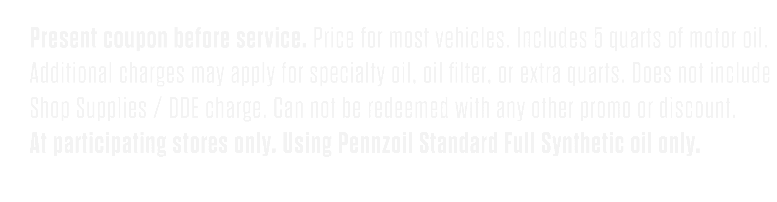 Protecting you and your vehicle is our top priority. We are proud to offer a 15 Year or 500K mile limited warranty on all Pennzoil Platinum motor oil poured in our stores with all other Pennzoil products having a 10 Year or 300K mile limited warranty. When you visit an Indiana Auto Care Jiffy Lube, you can rest easy knowing your vehicle is protected and running its best. Learn more at www.pennzoil.com/warranty